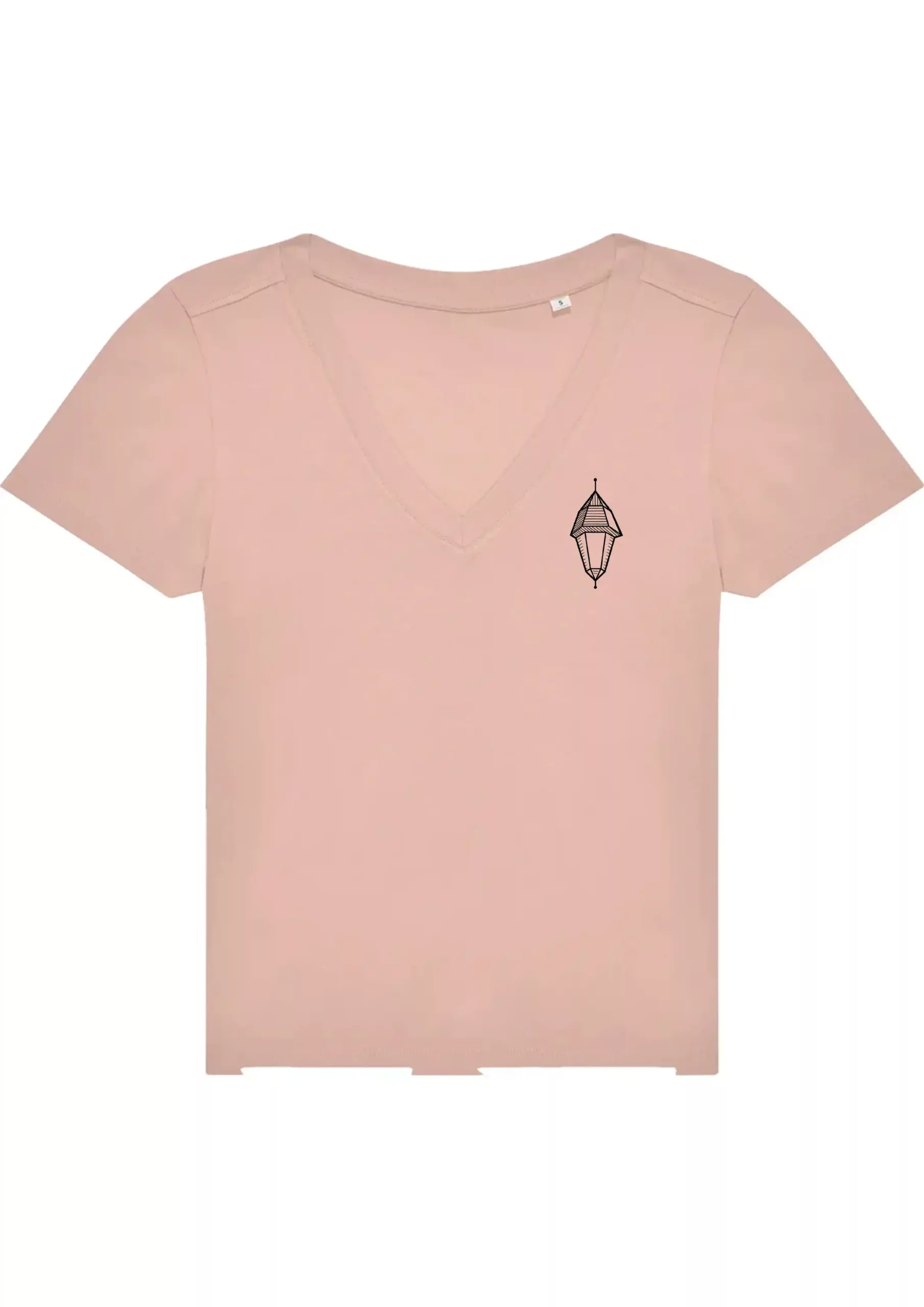 T-shirt femme, col en V, couleur rose pastel.
