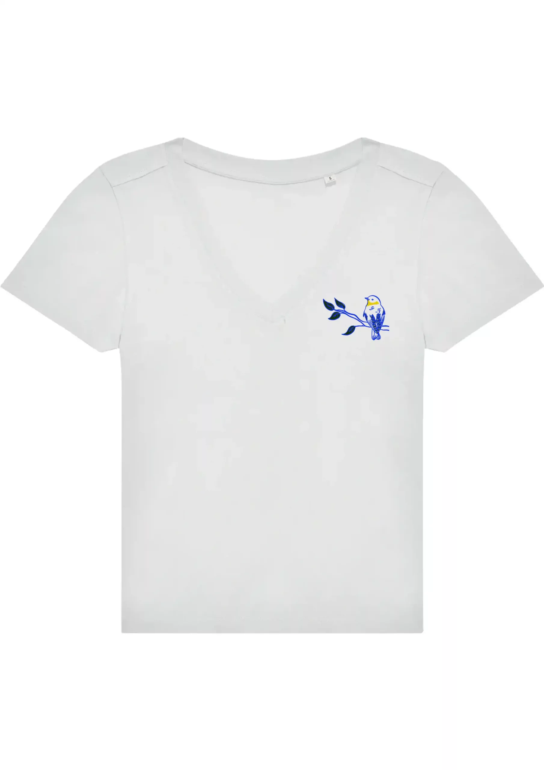 T-shirt femme, col en V, couleur blanche.