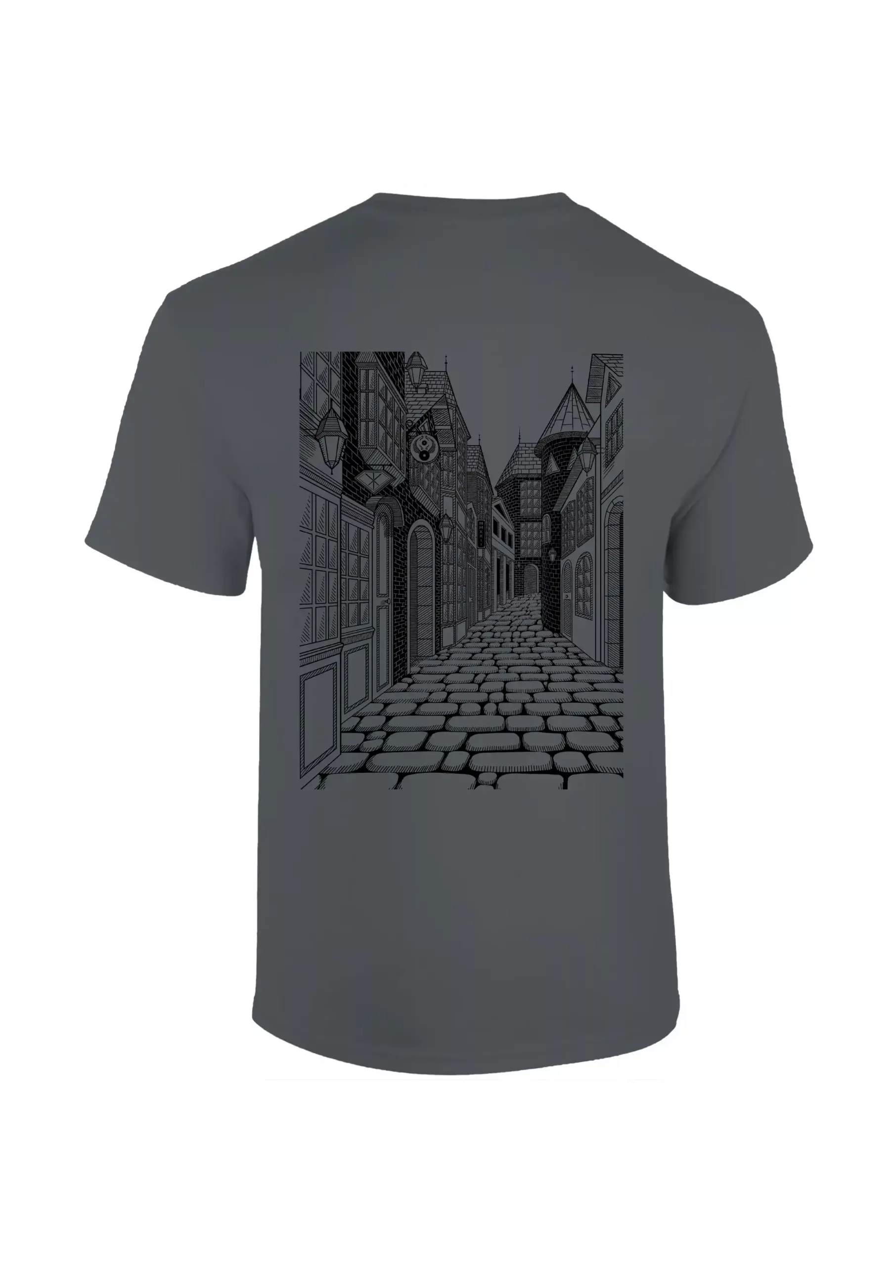 Le Motif “Old Street” représente une rue imaginaire inspirée de décors anciens avec une rue pavée et des bâtiments faits de briques.