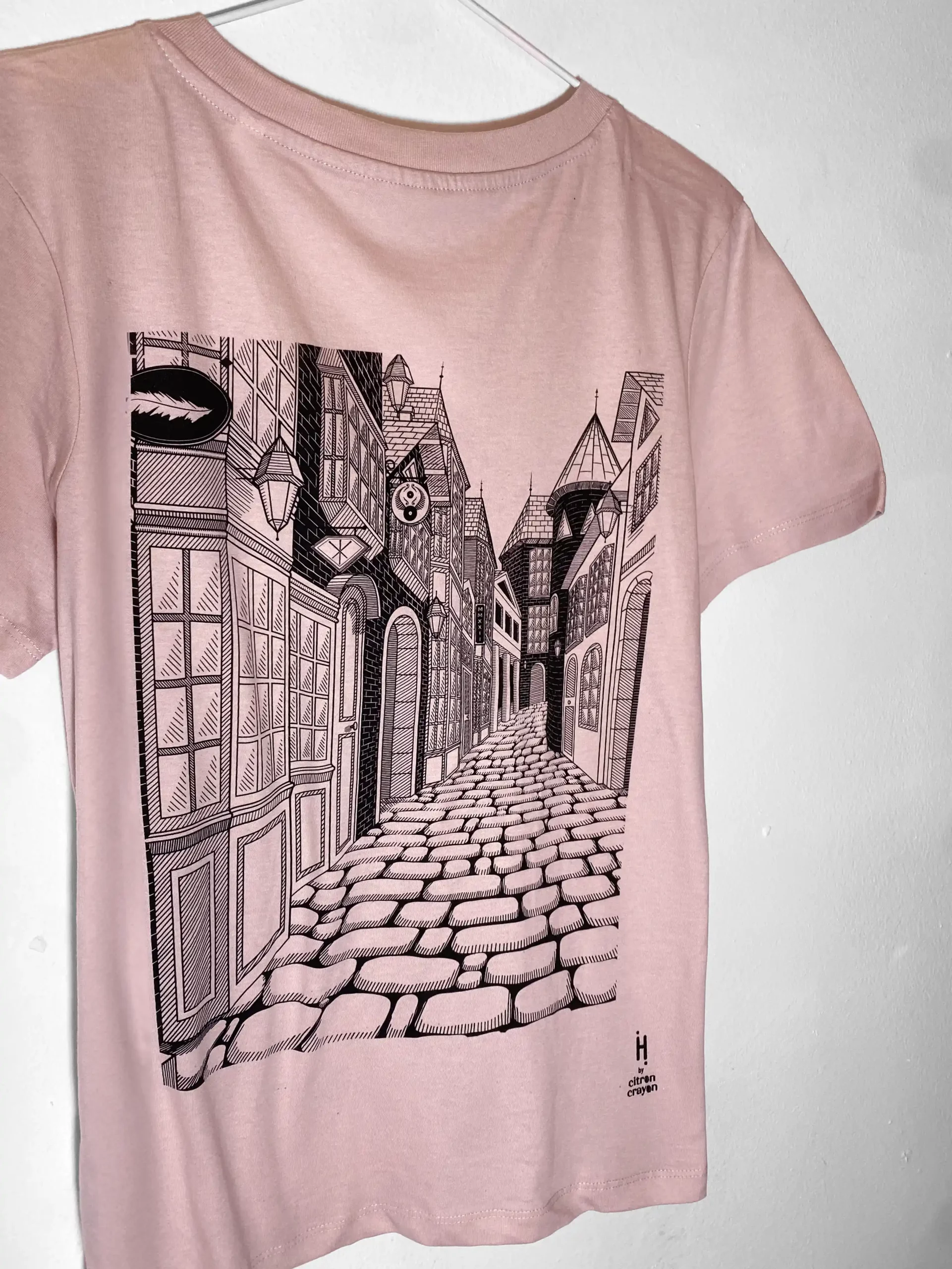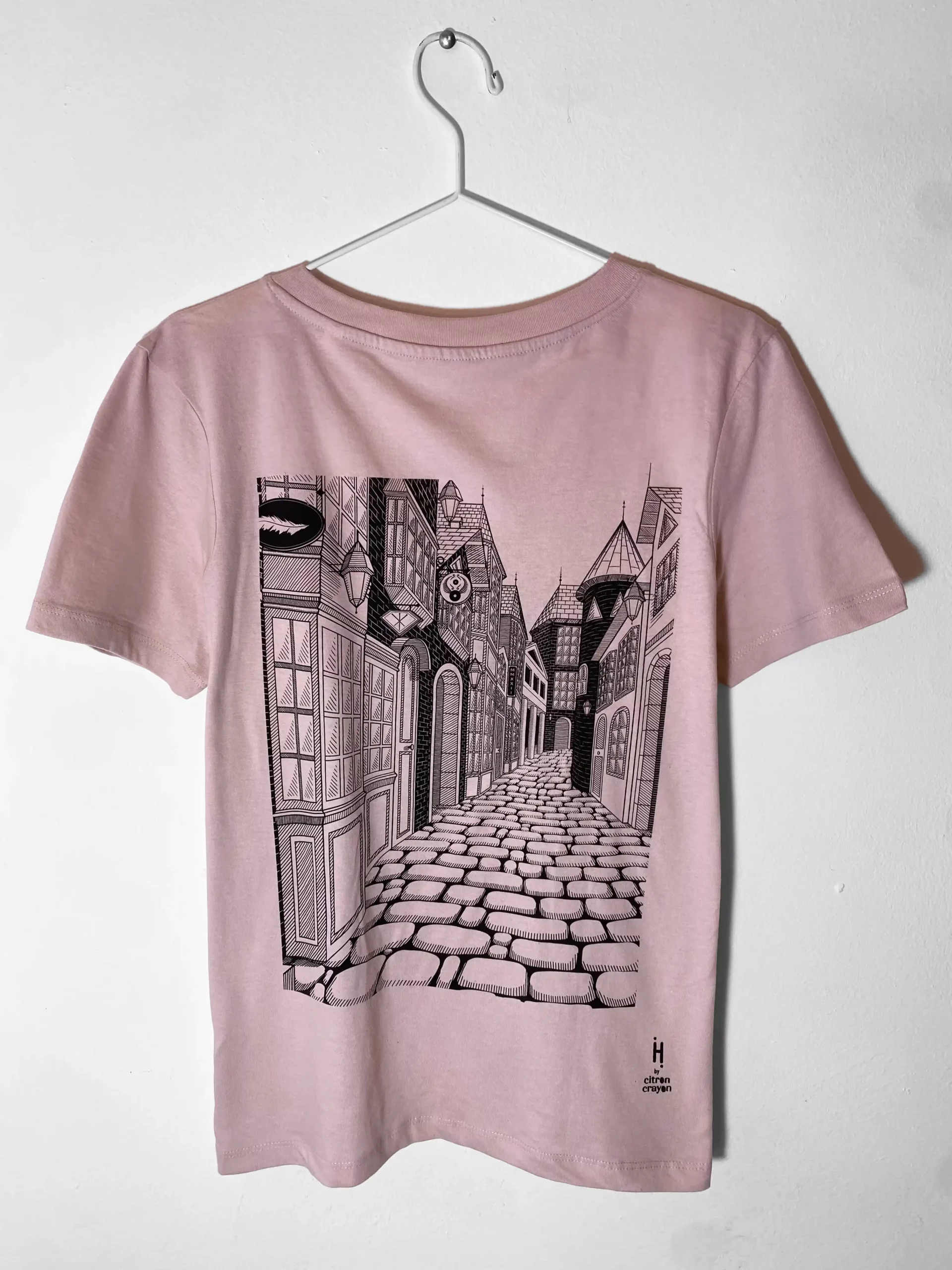 Le Motif “Old Street” représente une rue imaginaire inspirée de décors anciens avec une rue pavée et des bâtiments faits de briques.
